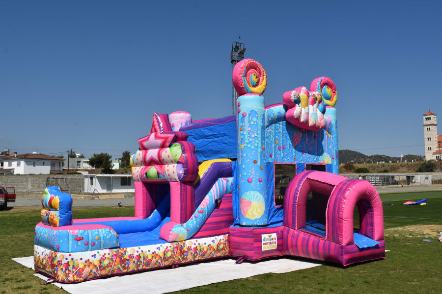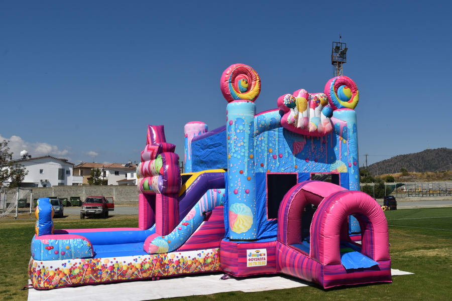 Χαρίστε στα μικρά σας κοριτσάκια ένα κόσμο διασκέδασης και χρωμάτων με το φουσκωτό μας Lollypops με τσουλήθρα 🌈🍭 Τέλειο για παιδικά πάρτυ, εκδηλώσεις, βαφτίσεις αυτό το απολαυστικο φουσκωτό υπόσχεται ώρες διασκέδασης και ενθουσιασμού.